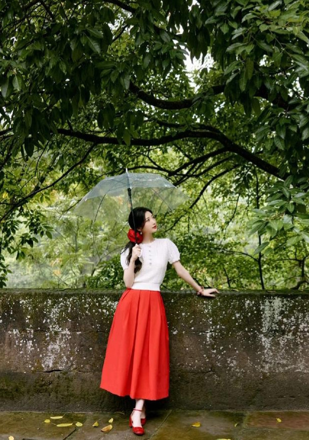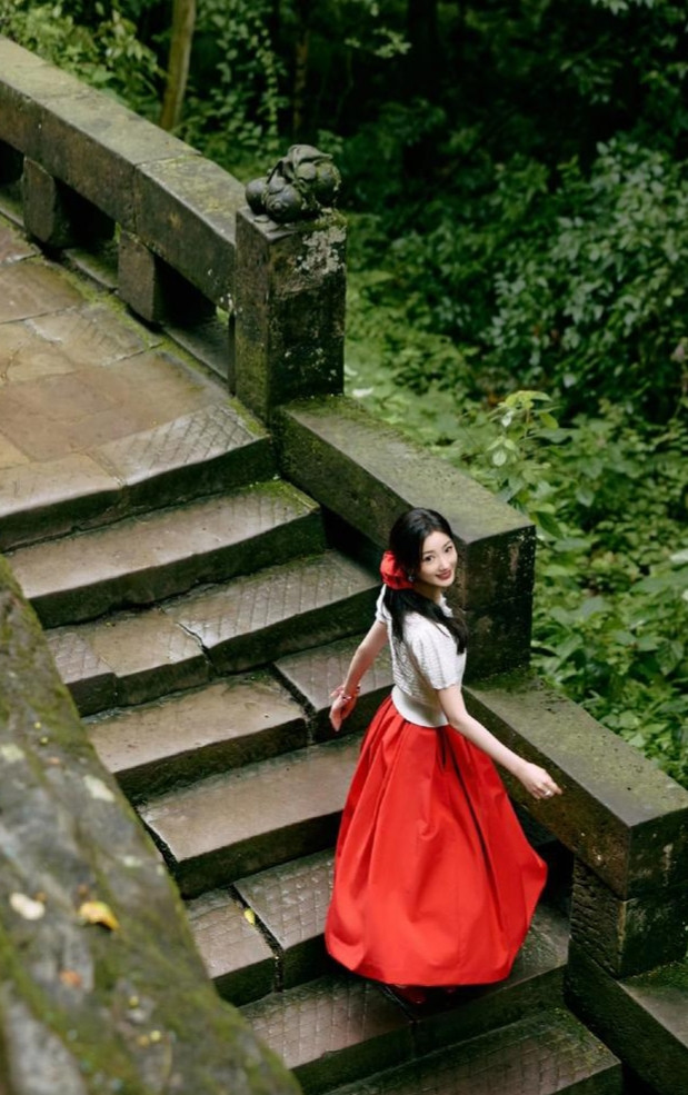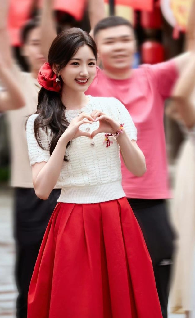财盛证券 毛晓彤央视国庆晚会花絮, 红裙造型明媚似骄阳